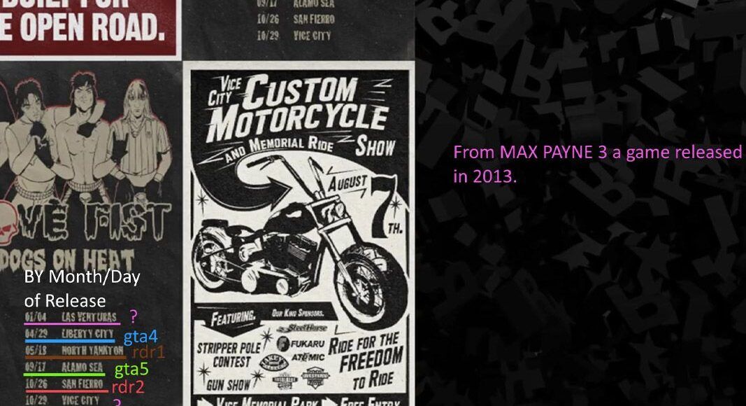 Większość powyższych dat (oprócz pierwszej i ostatniej) znalazły już swoje nawiązanie. 29 kwietnia 2008 ukazało się GTA 4, 18 maja 2010 premierę miało Red Dead Redemption 1, 17 września – wszystkim znane GTA 5, a 26 października – ostatnia gra Rockstar Games, Red Dead Redemption 2. Z niczym niepowiązane pozostają daty 4 stycznia i 29 października. Najciekawszą z nich wydaje się data 29 października. Albowiem według poprzednich informacji, a także oczekiwań graczy, szósta część serii dziać ma się właśnie w Vice City. Do ustalenia pozostaje rok premiery – 2020, lub 2021. Tutaj wskazówką może być znana w społeczności legenda o “drzwiach na lotnisku w Los Santos” z numerami 2013 (premiera GTA 5), oraz 2021 (premiera GTA 6?)